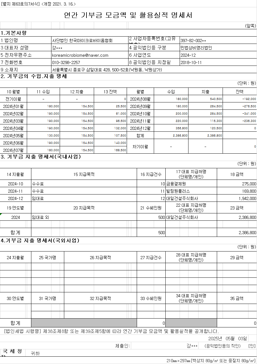 Á¦¸ñ | 2024 ¿¬°£ ±âºÎ±Ý ¸ð±Ý¾× ¹× Ȱ¿ë½ÇÀû ¸í¼¼¼ |